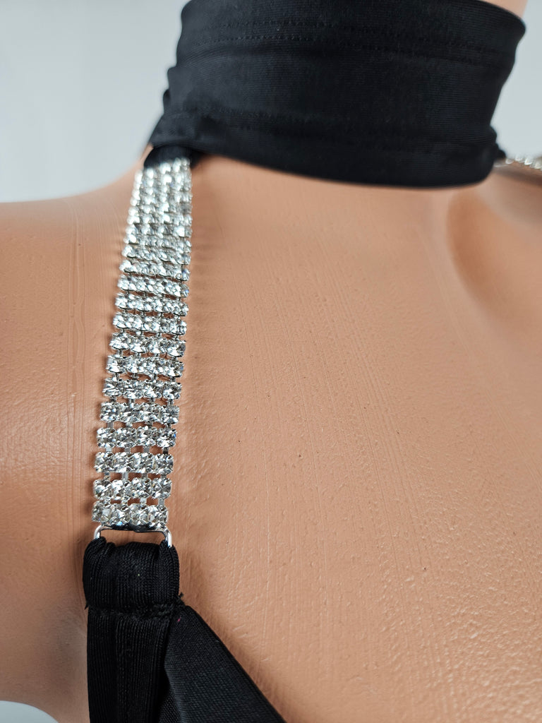 Baby Blue Rhinestone Choker Drape Cowl Gown (S/M)
