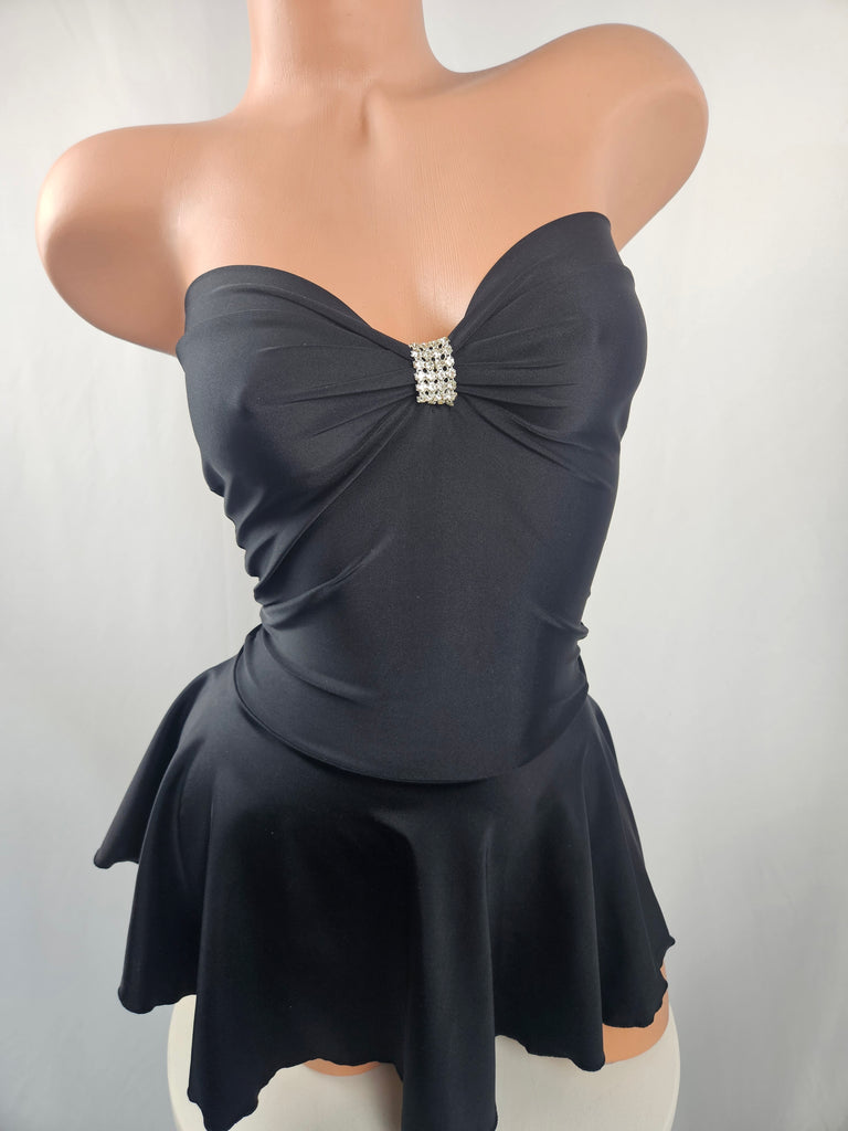 Black Velvet Tie Front Monokini w/ Pom Poms
