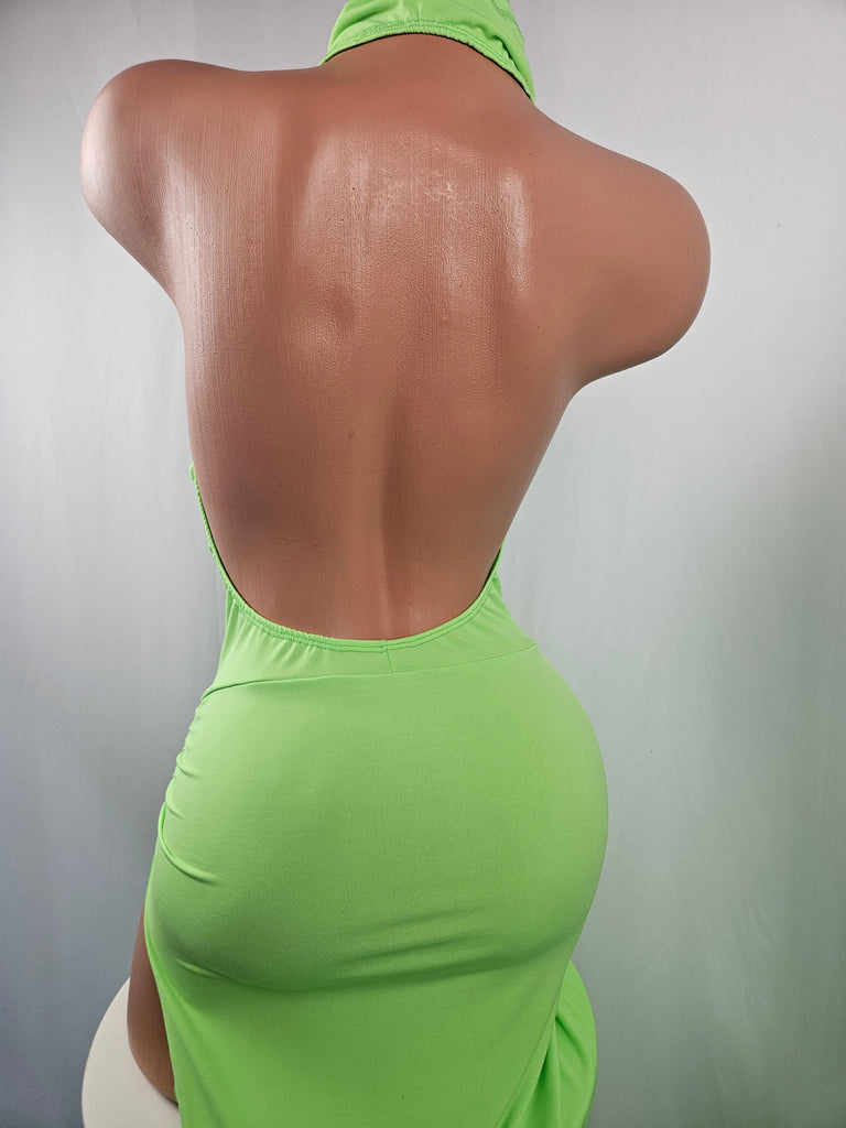 Neon Green Draped Cowl Gown w/ Rhinestones