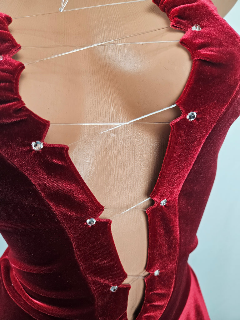 Red Velvet Lace Up Strapless Mini Dress