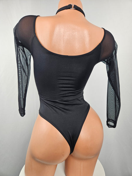 Black Lace Up Long Sleeve Romper w/ Matching Choker
